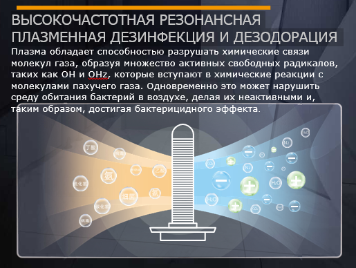 Используя самостоятельно разработанную высокочастотную резонансную плазменную технологию, высвобождаемые положительные и отрицательные ионы взаимодействуют, быстро уничтожая бактерии и вирусы.